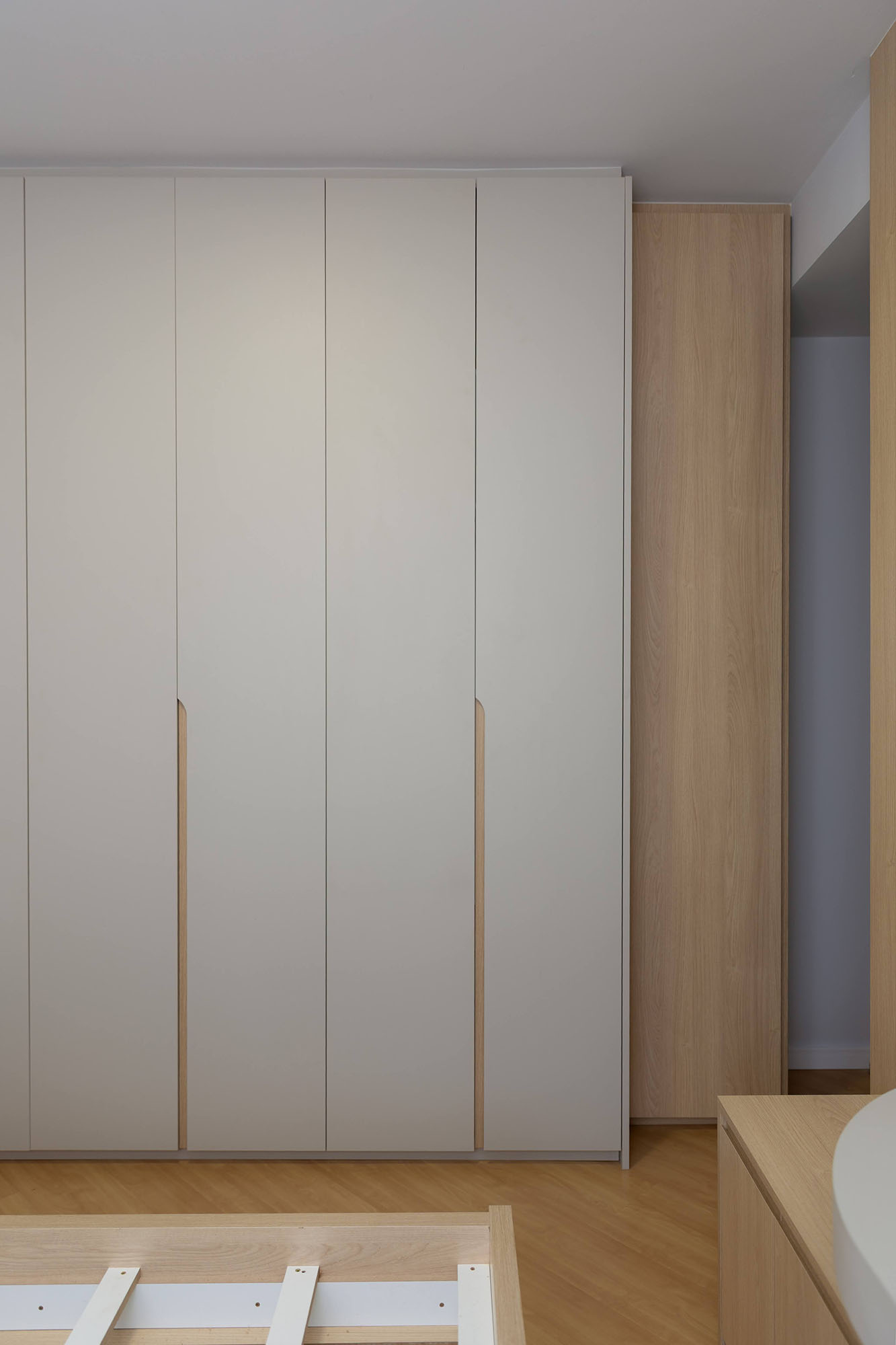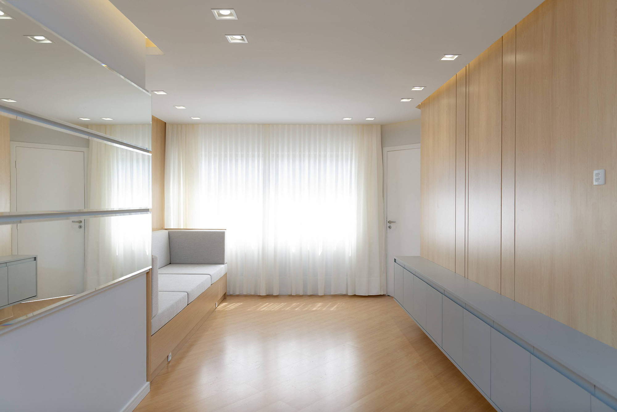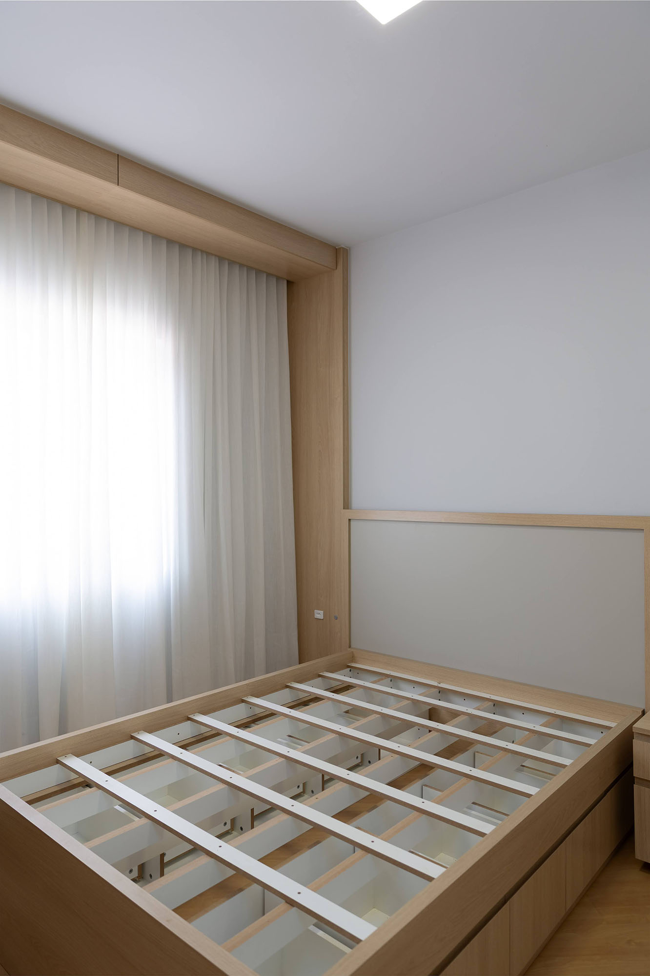 Nos quartos, sendo dois dormitórios de casal e um de solteiro, a marcenaria foi desenvolvida de forma personalizada, priorizando espaços otimizados, funcionalidade e conforto. Cada ambiente recebeu soluções sob medida para armazenamento, organização e proporção adequada, respeitando as necessidades de uso e a identidade do projeto.